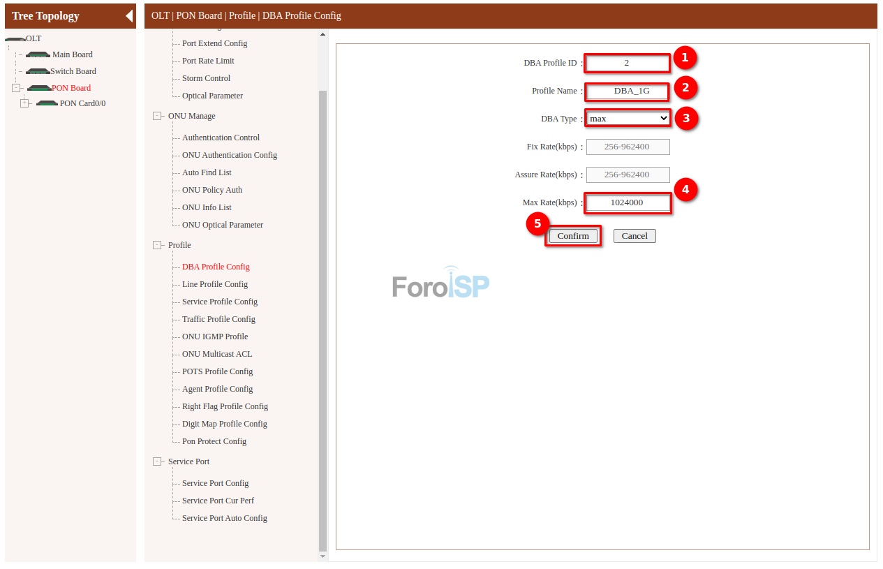 OLT | PON Board | Profile | DBA Profile Config