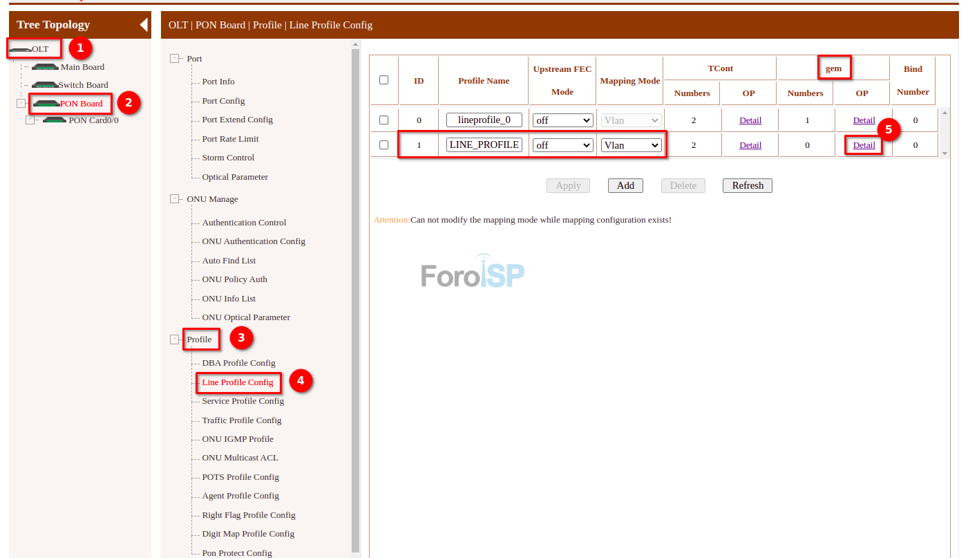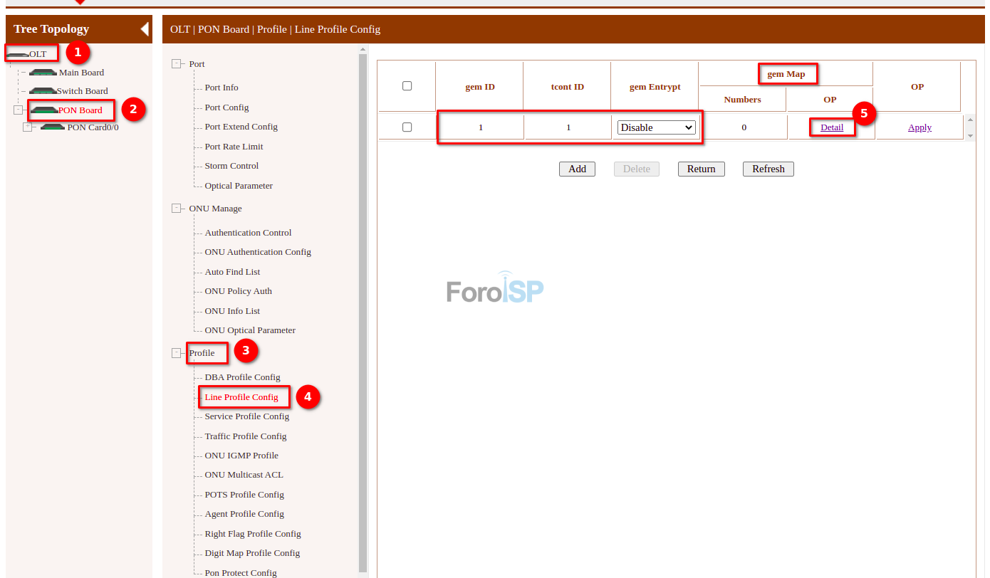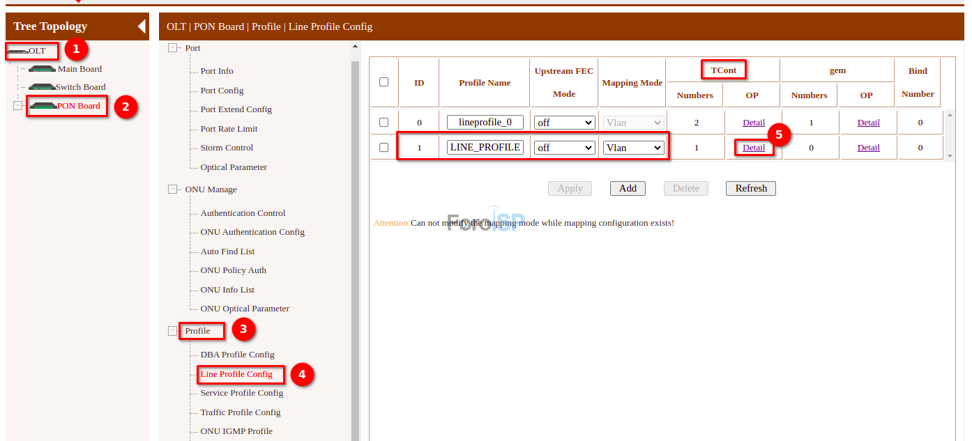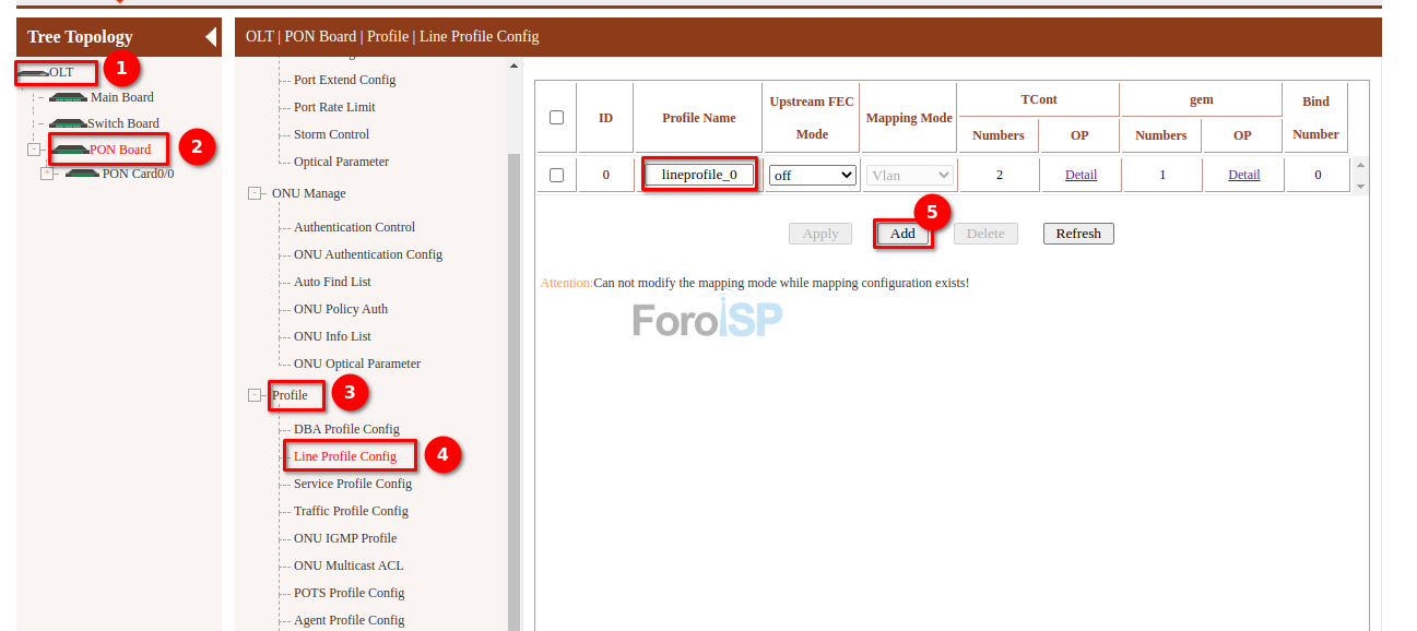 OLT | PON Board | Profile | Line Profile Config