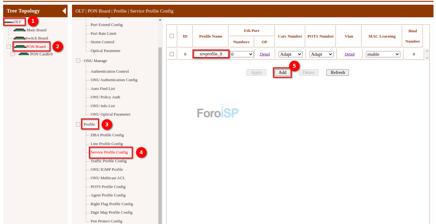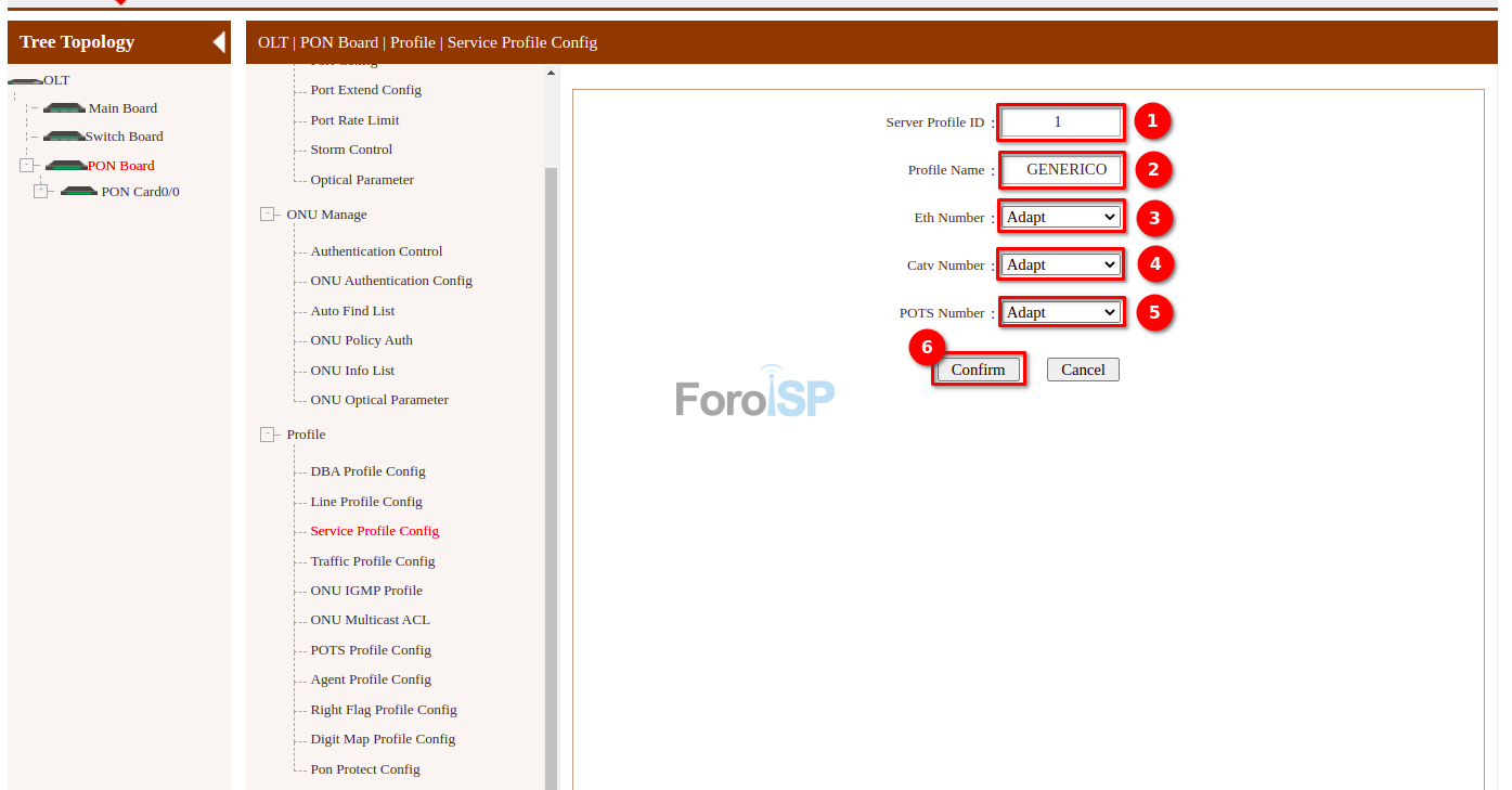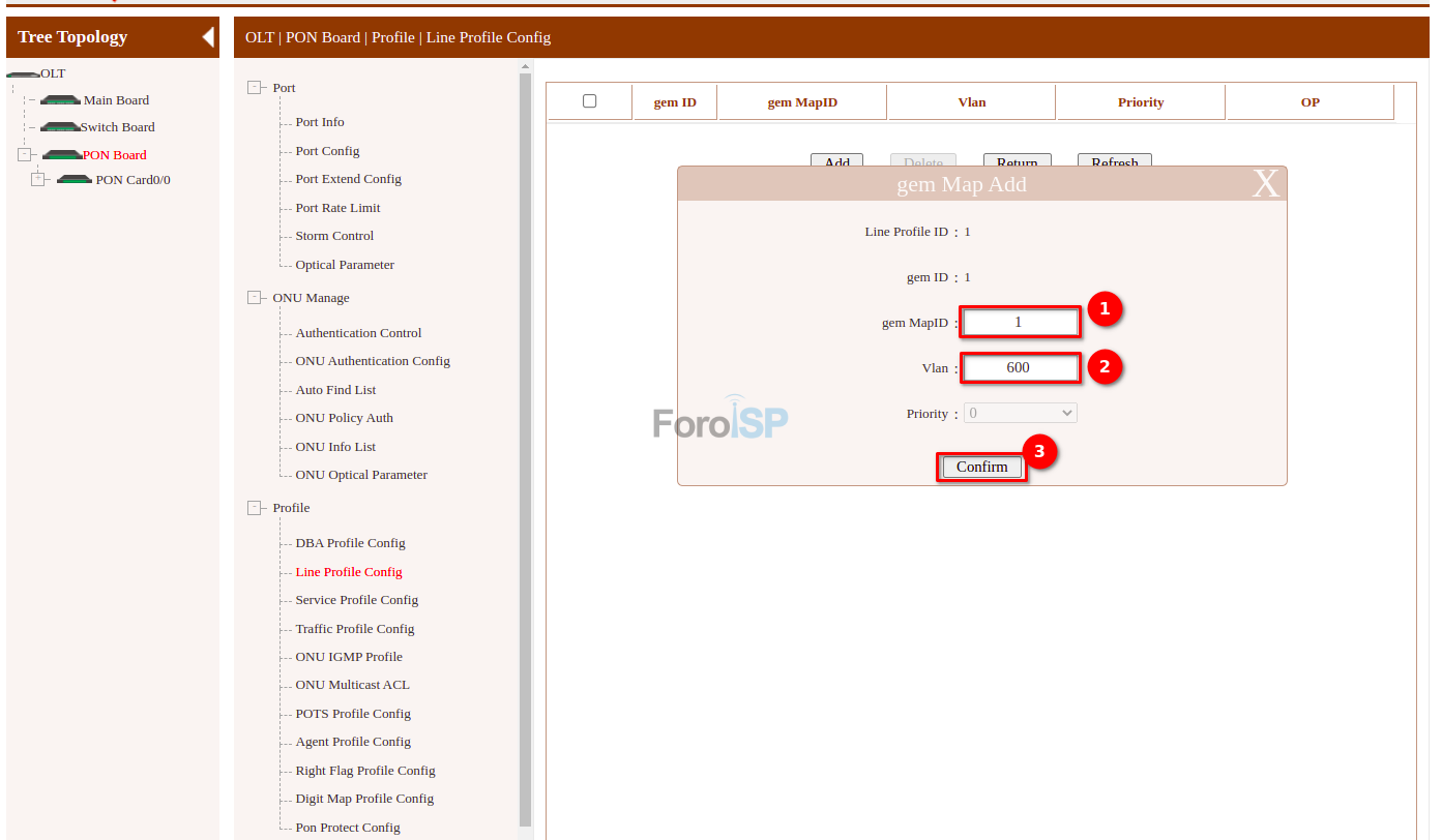 OLT | PON Board | Profile | Line Profile Config