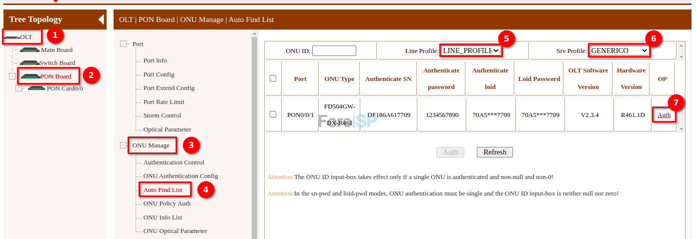OLT | PON Board | ONU Manage | Authentication Control