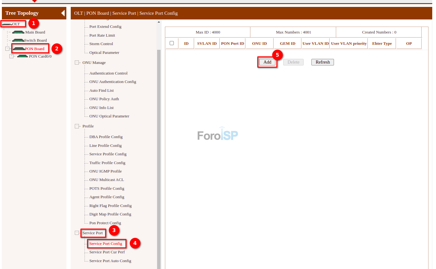 OLT | PON Board | Service Port | Service Port Auto Config