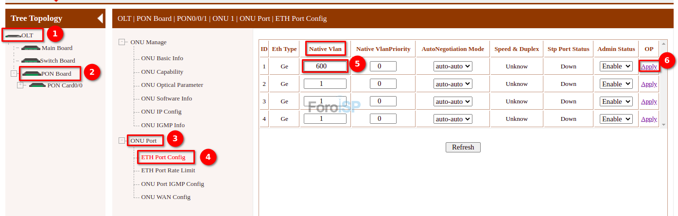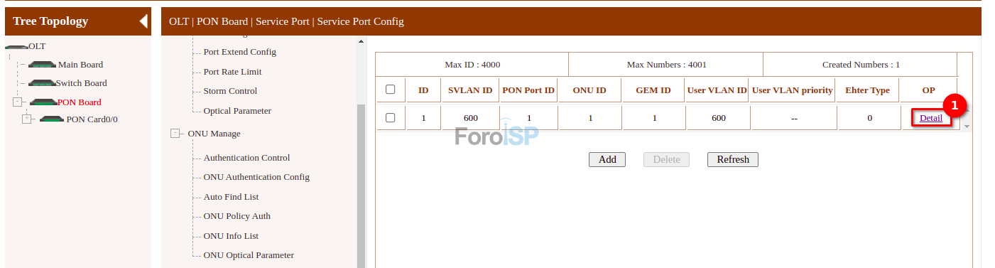 OLT | Main Board | VLAN | OltPortVlan