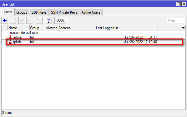 Necesitamos tener unas credenciales de acceso al servidor local. Para esto solo hay que hacer un usuario de acceso al router Mikrotik con permisos full.