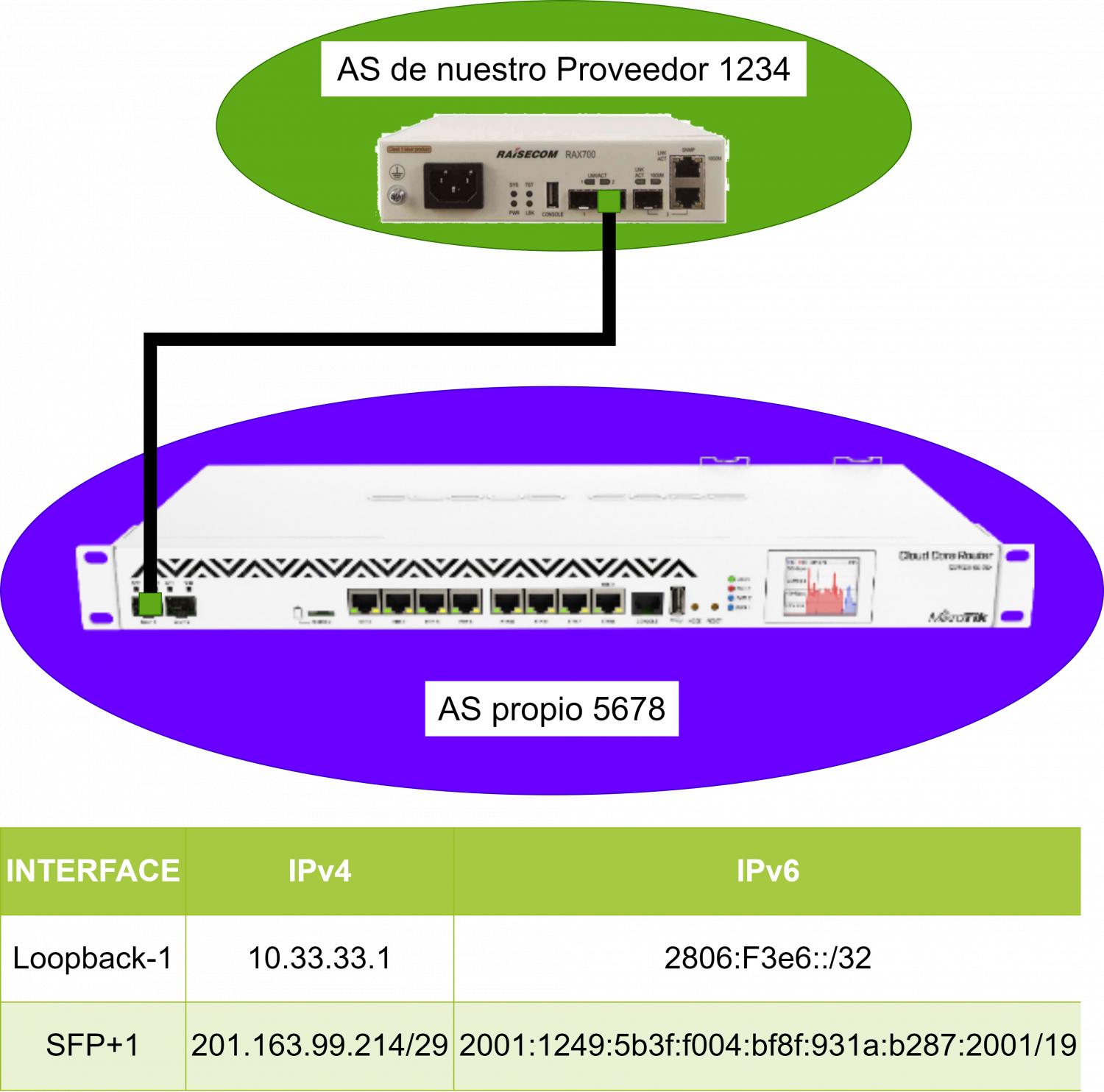 En esta ocasión vamos a establecer una sesión eBGP con nuestro proveedor de Internet.