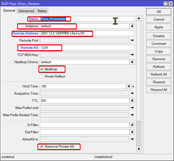 add address-families=ipv6 multihop=yes name=Peer_Alestra remote-address=2001:1248:2:100f:ff:ff00:c9a3:e1fd remote-as=11172 \