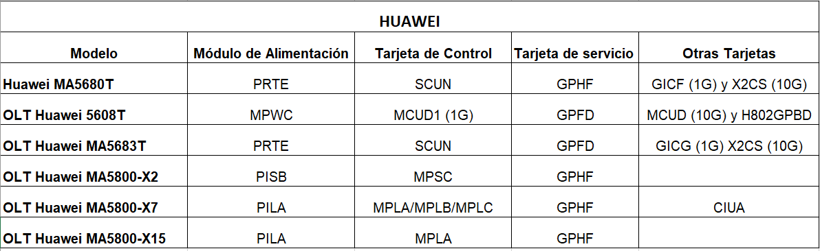 En este post se explica que modelos de tarjeta son compatibles con algunos modelos de OLT HUAWEI.