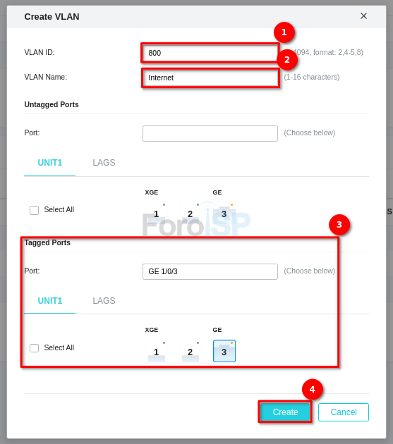 - User VLAN: Coloque la VLAN creada en los pasos anteriores o el de su preferencia