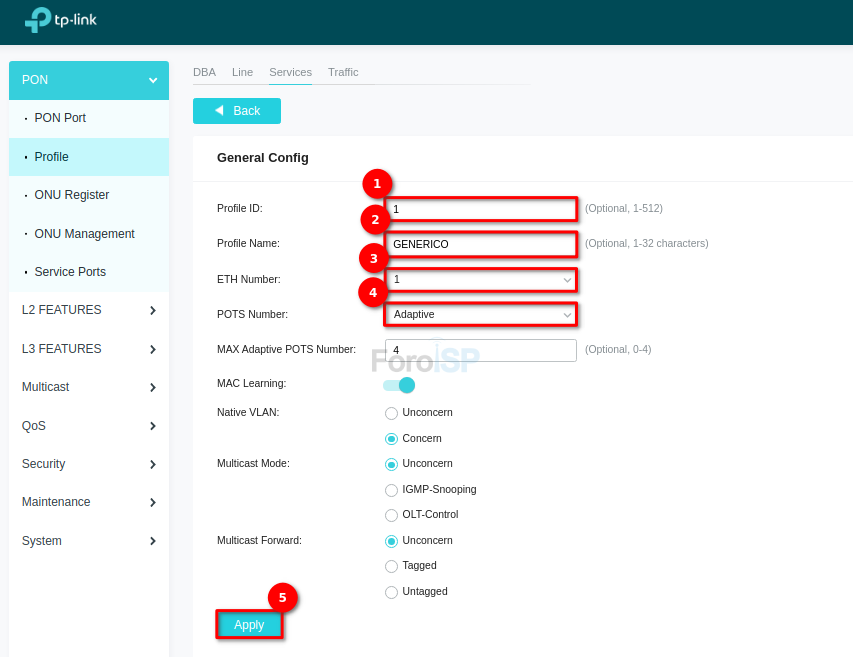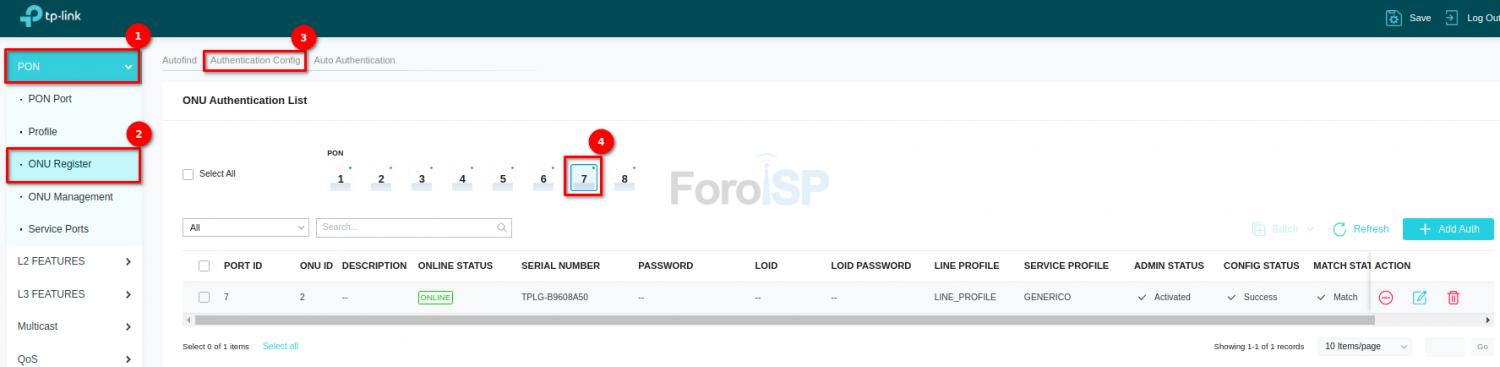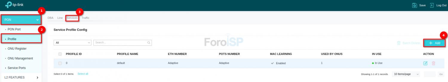 - Profile ID: Debido a que la OLT ya tiene registrado uno por default, usaremos el número 1