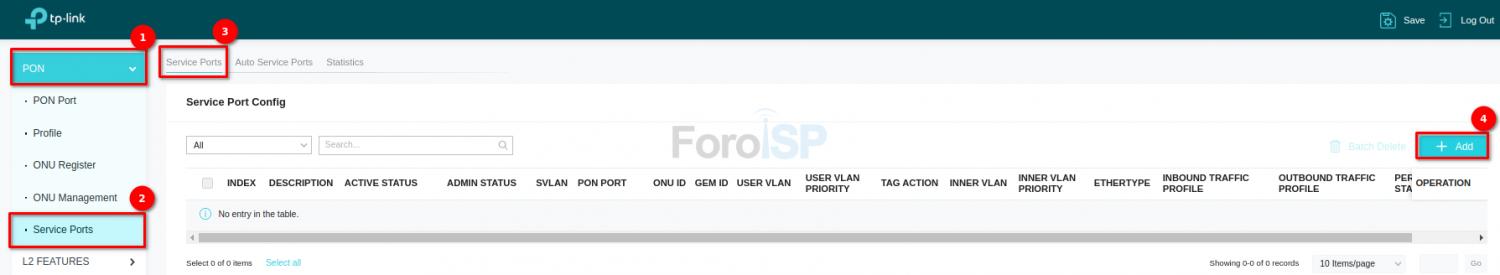 - Service Port Index: Coloque el número en secuencia de los service port que ya haya