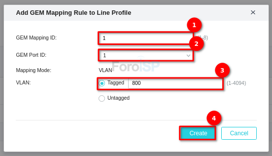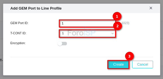 - GEM Port ID: Seleccionamos el Gem Port creado anteriormente