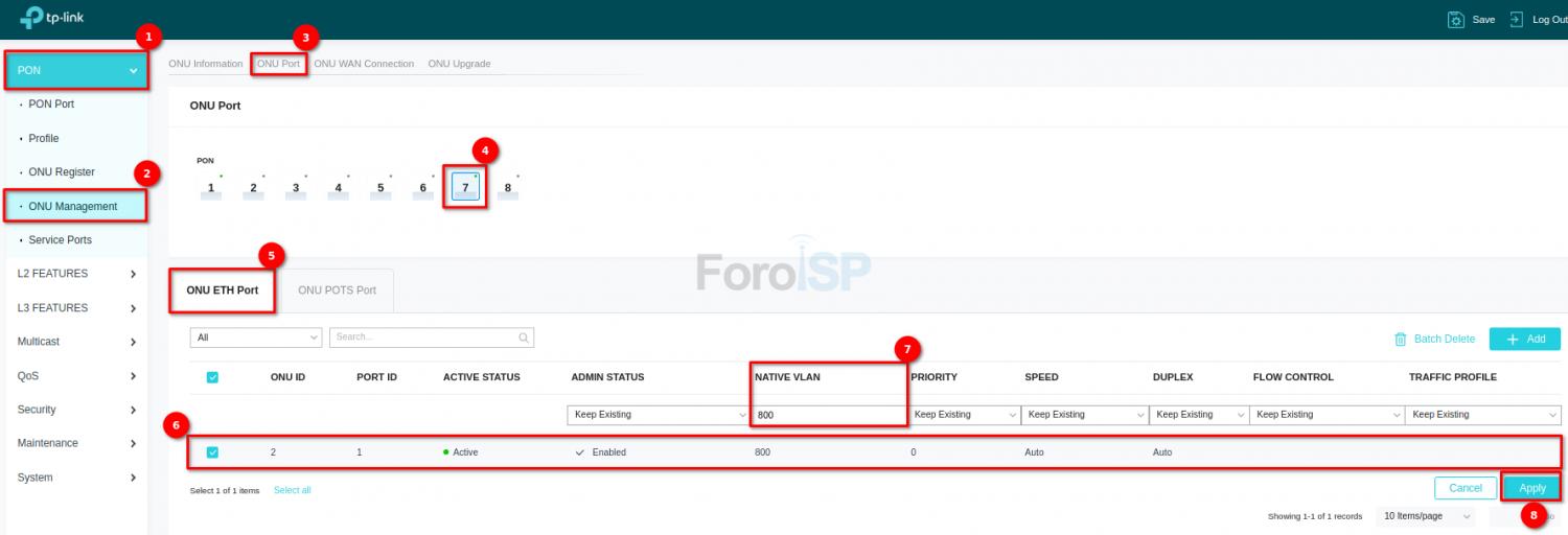 - ONU ID: Seleccionamos el ONU ID correspondiente