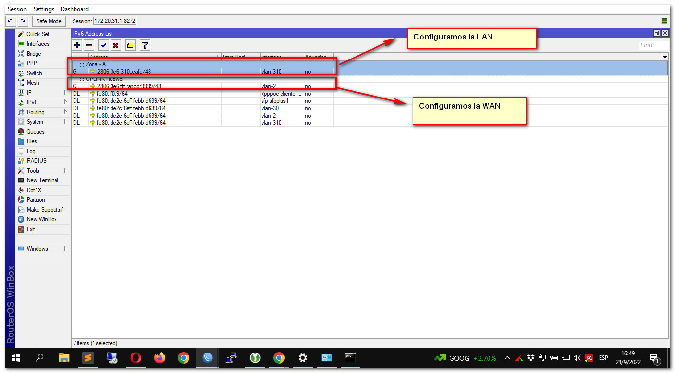 Asignación de direcciones IPv6 en las interfaces VLAN del MikroTik