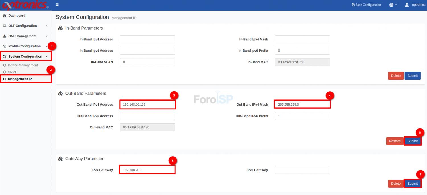 Asignar IP de administración a la OLT