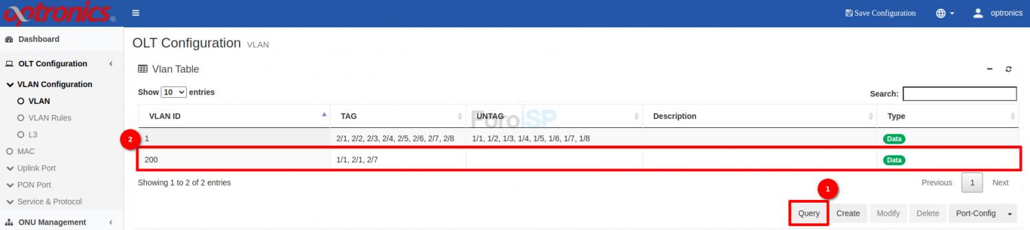 OLT Configuration | VLAN Configuration | VLAN