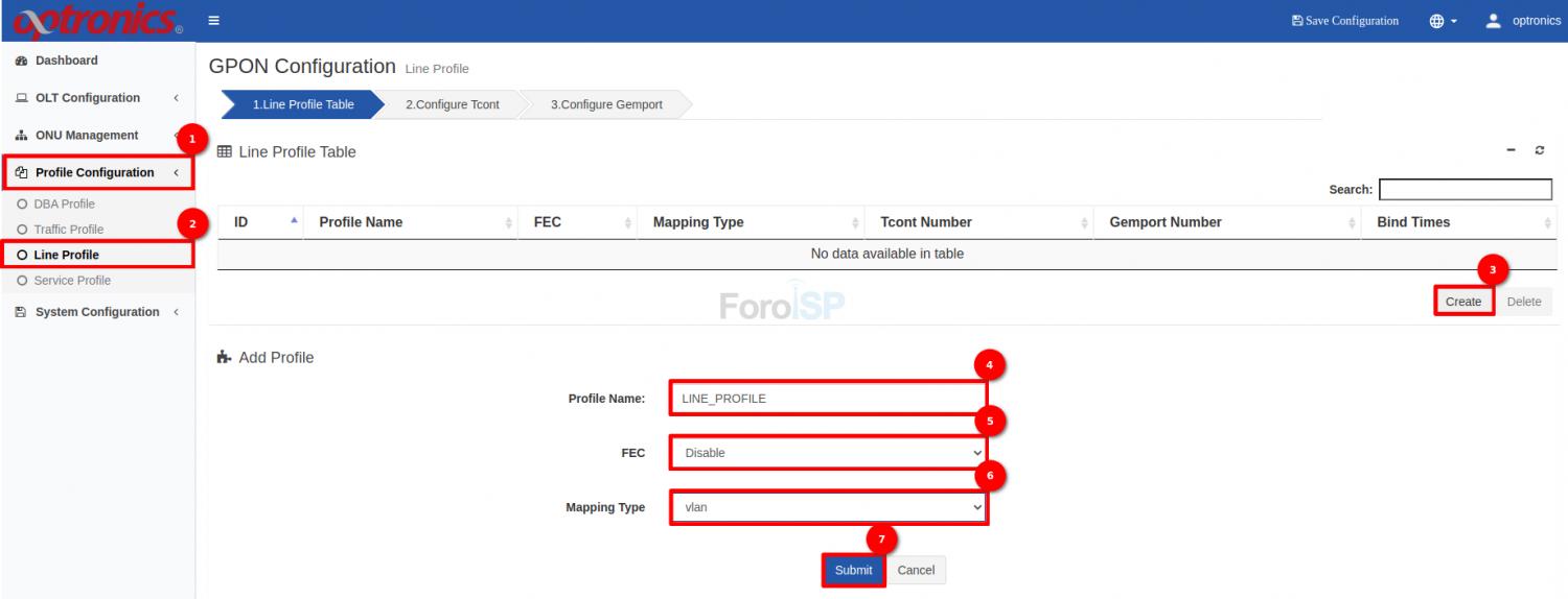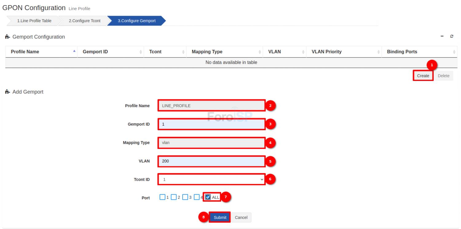 Por último configuramos el Gemport, para esto seleccionamos el Line Profile y damos click en 3. Configurar Gemport