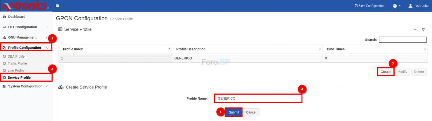 Antes de autorizar alguna ONU debemos crear nuestro Service Profile, colóquese en: