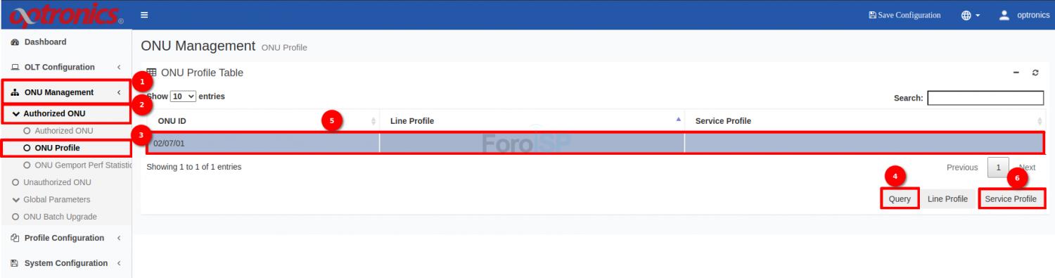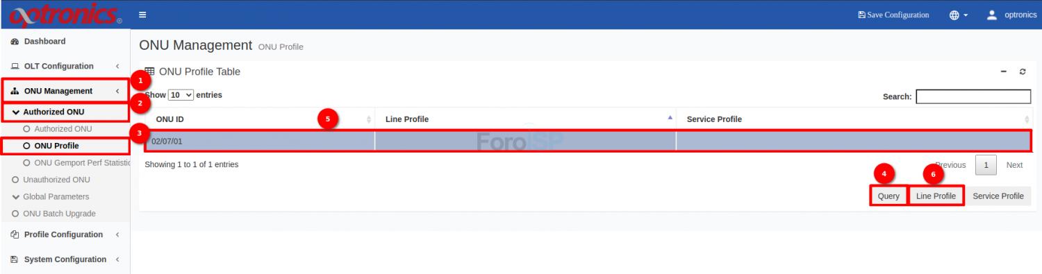 Para asignar el Line Profile y Service Profile a la ONU, colóquese en: