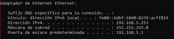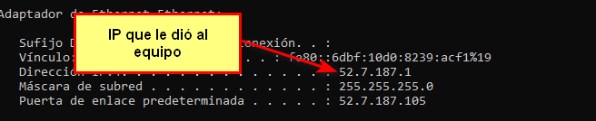 Al conectar tu equipo te asignará una ip que este dentro del pool de direcciones ip de nuestro segmento LAN.
