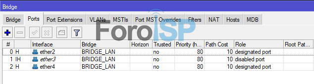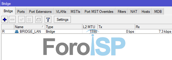 1En el Mikrotik que actúa como nuestro switch, tenemos que tener configurado nuestra interfaz bridge para el reenvío de paquetes.