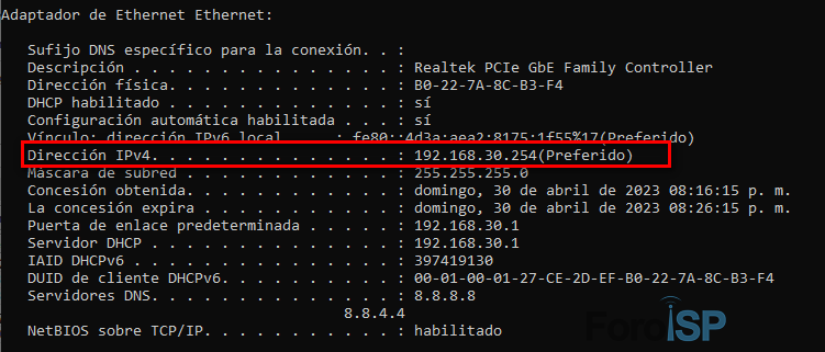 Como último punto, desde la laptop podemos hacer un ipconfig /renew, ahora las únicas ip que debemos recibir son las del segmento 192.168.30.0/24, el cual es nuestra LAN del servidor DHCP autorizado.