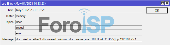 Este es un servidor DHCP que no es controlado por nosotros, sin embargo, al encontrarse dentro de nuestra red puede suplantar la función de nuestro servidor y comenzar a brindar direcciones ip a nuestros abonados.