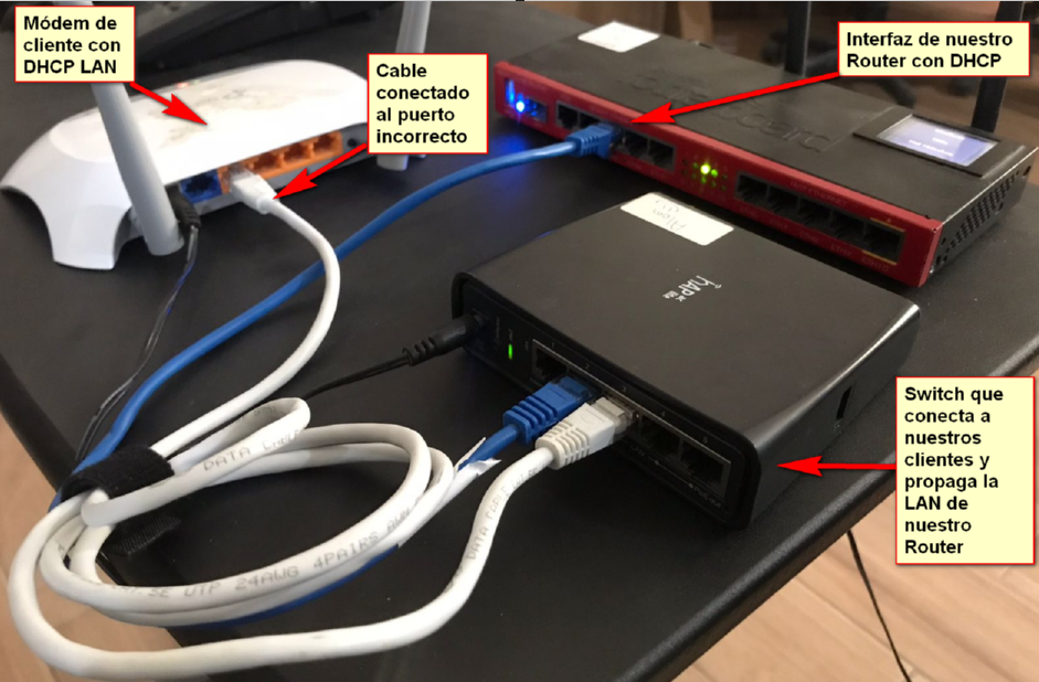 Esto puede causarnos problemas de conectividad con otros clientes, ya que ellos pueden recibir una dirección IP del módem del cliente, en lugar de una de nuestras direcciones IP de nuestro servidor DHCP del router.