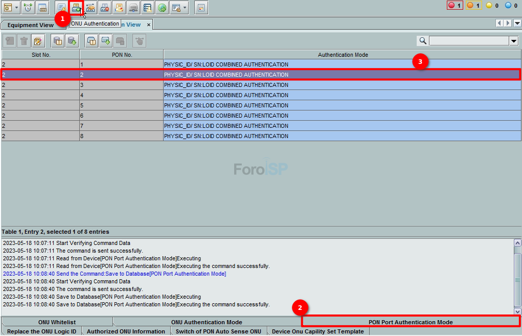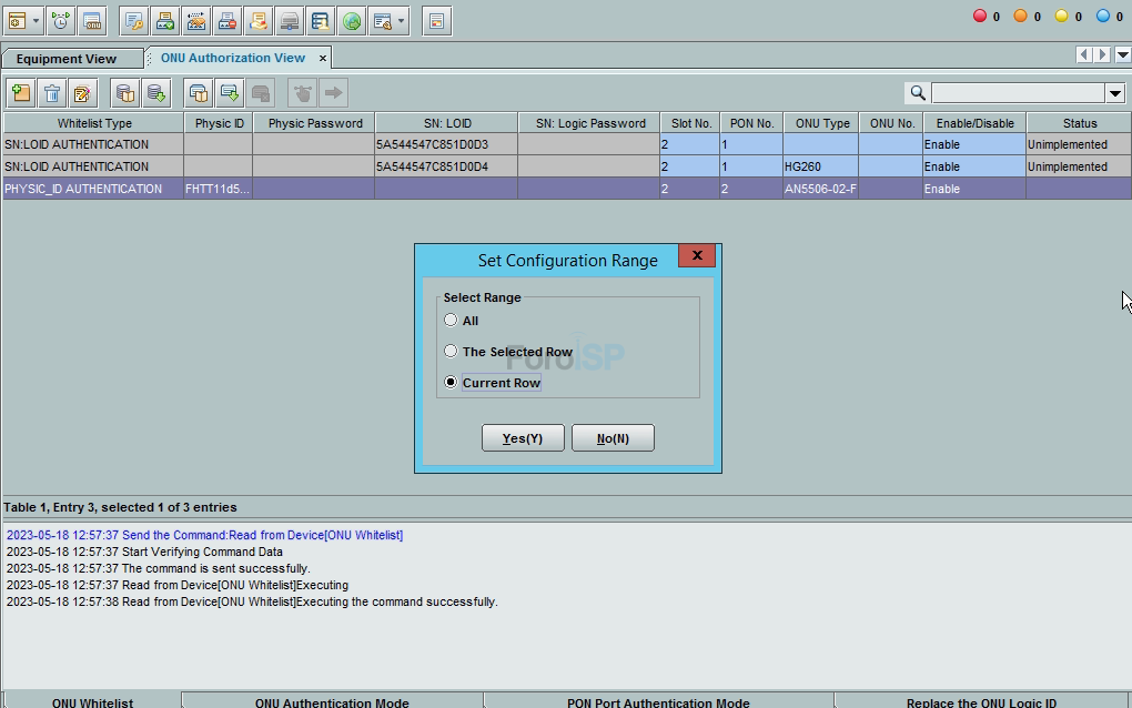 Esto nos traerá la lista de onus sin autorizar, elegimos la ONU deseada y le damos click derecho, luego seleccionamos Add to the ONU Authority List | as "Physical ID Authentication" Mode Added to the Whitelist