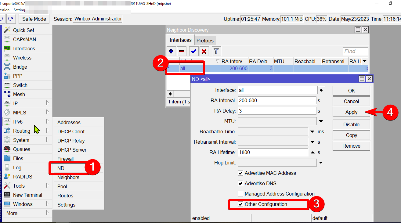 Habilitar "other configuration". Esto es necesario para que las PC con Windows reciban una IPv6.
