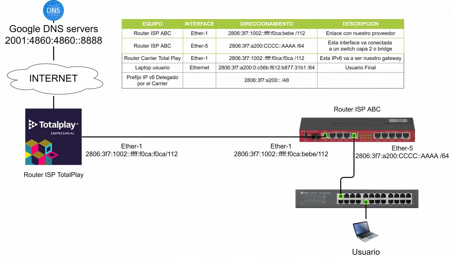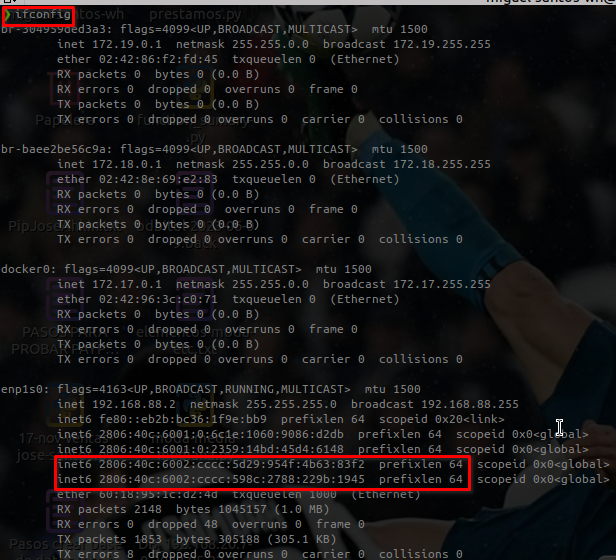 Nuestro carrier Total Play nos hace entrega de un prefijo IPv6 /48.