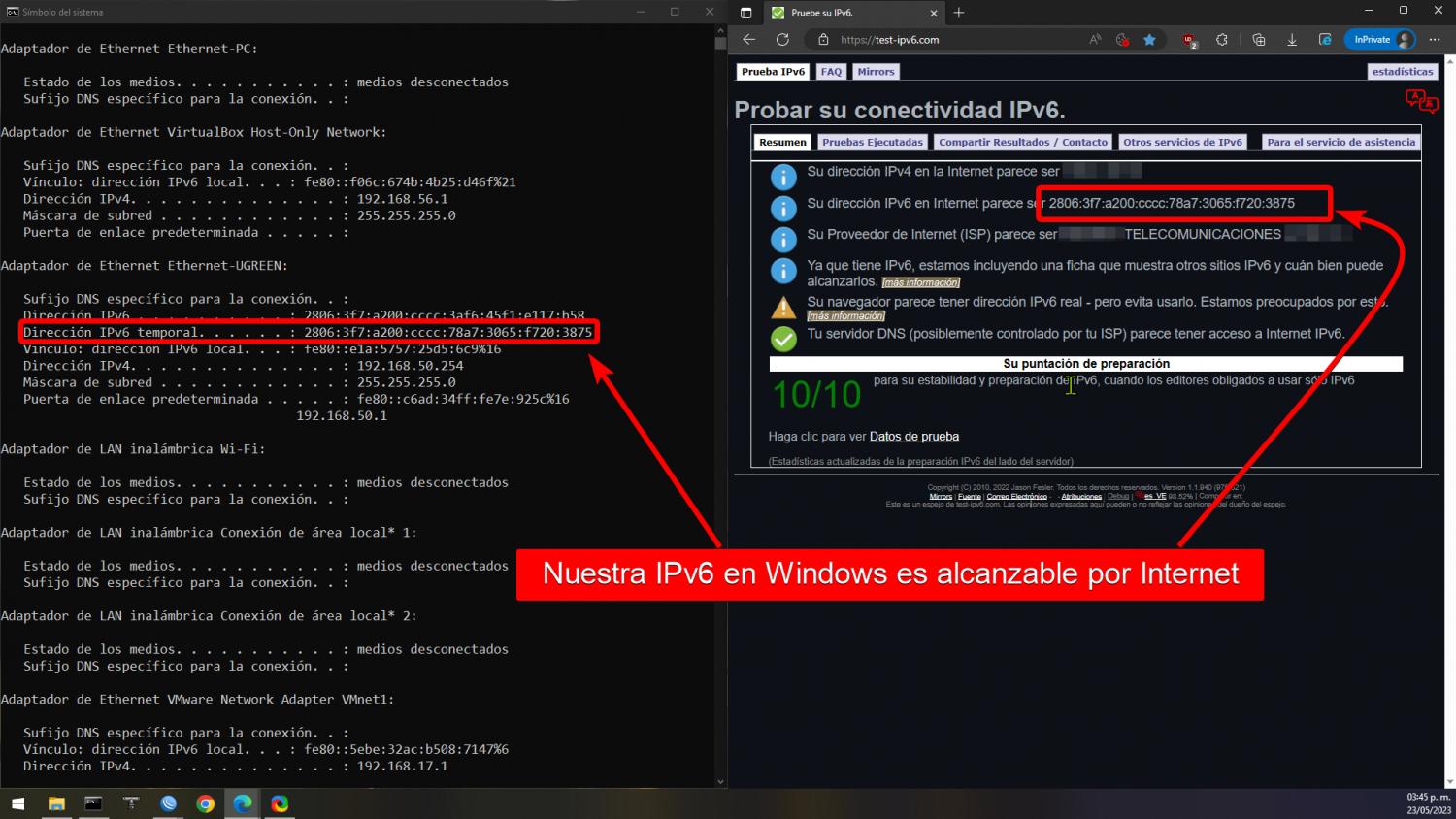 Al conectar nuestra laptop automáticamente nos dará una IPv6.