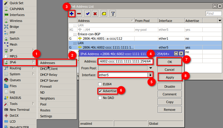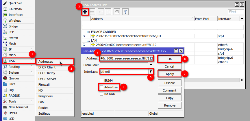 IPv6 en Mikrotik. Configurar WAN con IP estatica + LAN