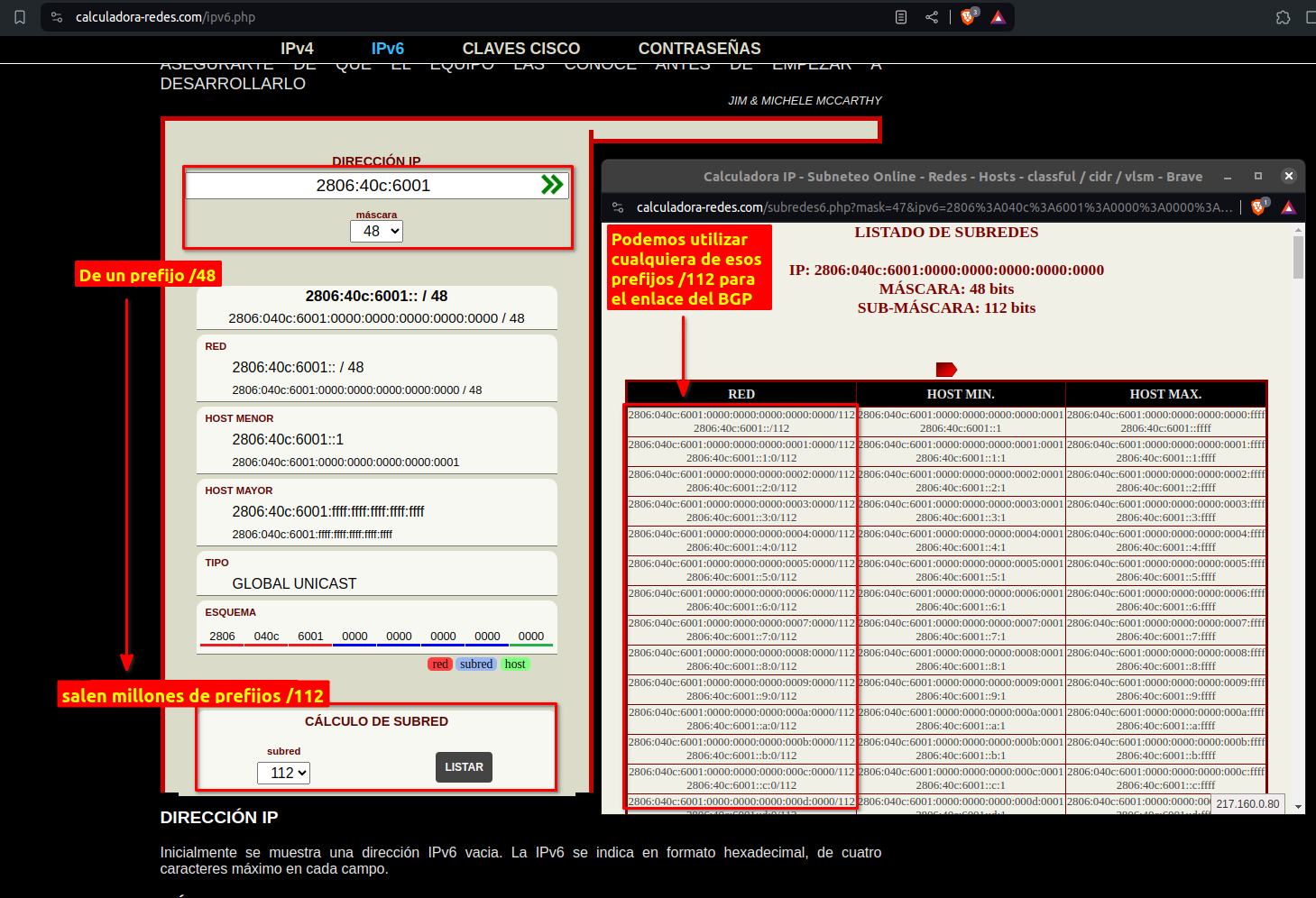 Como podemos ver al tener un /48 podemos usar hasta 65,536 prefijos /64. Es una cantidad enorme, probablemente nunca usemos todos esos prefijos.