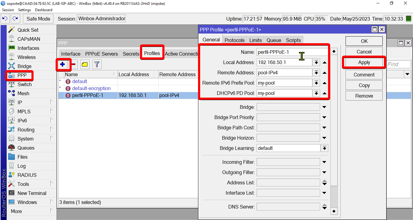 add dhcpv6-pd-pool=my-pool local-address=192.168.50.1 name=perfil-PPPoE-1 remote-address=pool-IPv4 remote-ipv6-prefix-pool=my-pool