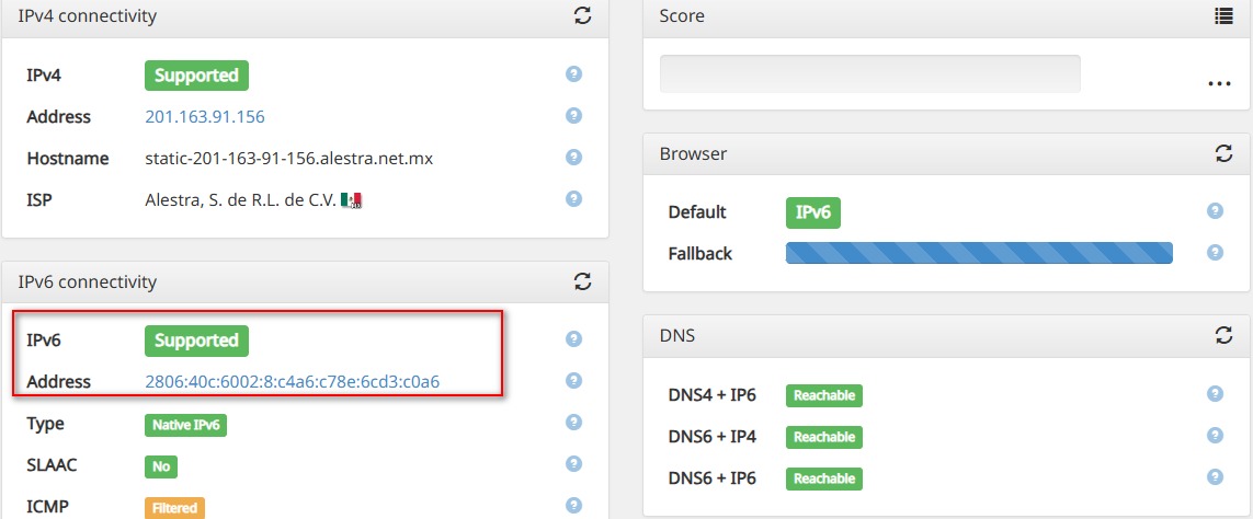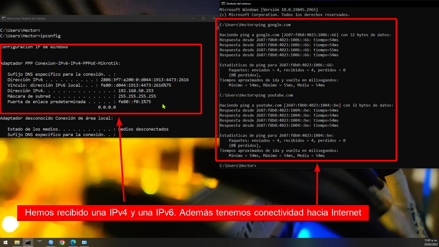 Además nos debe de entrega una IPv4 del pool 192.168.50.0/24 y una IPv6 con prefijo 2806:3F7:A200:CCC::/64.