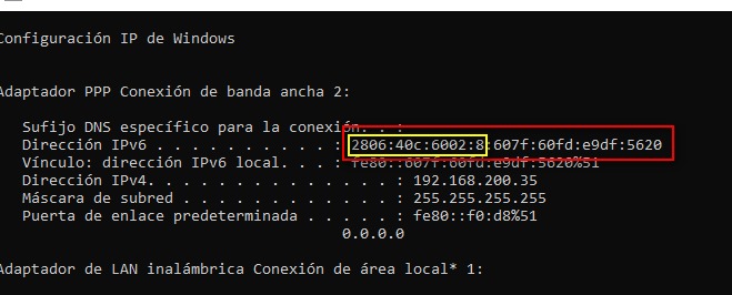 Esto quiere decir que solo va a requerir una IPv6. Windows solo va a tomar unas pocas direcciones IPv6 sueltas.