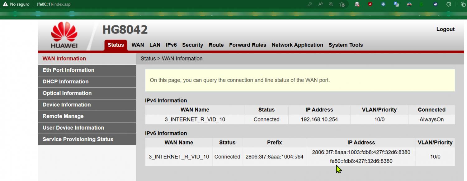Tiene Dual-Stack, es decir que con una sola WAN hemos entregado IPv4 e IPv6.