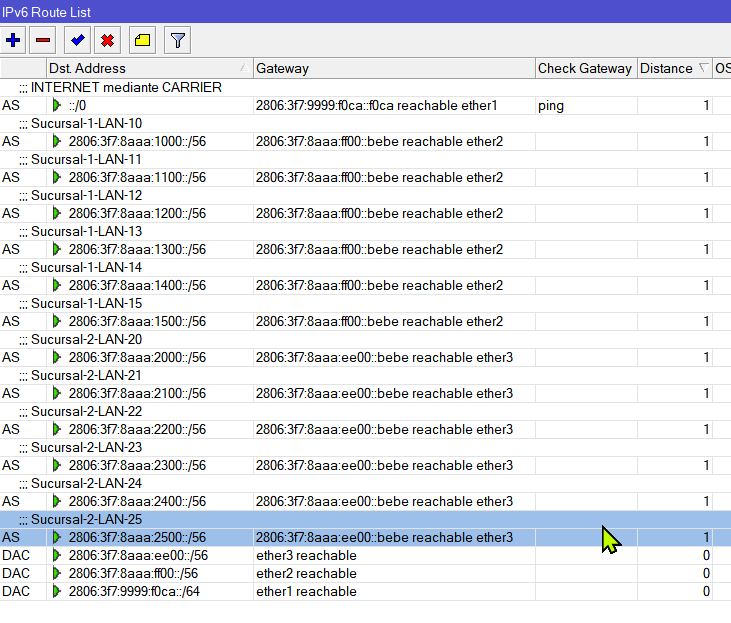 add comment=Sucursal-2-LAN-25 distance=1 dst-address=2806:3f7:8aaa:2500::/56 gateway=2806:3f7:8aaa:ee00::bebe