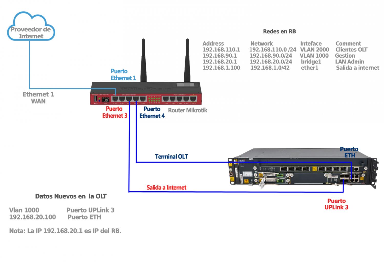 Estas configuraciones se realizaron utilizando OLTs con las siguientes características: