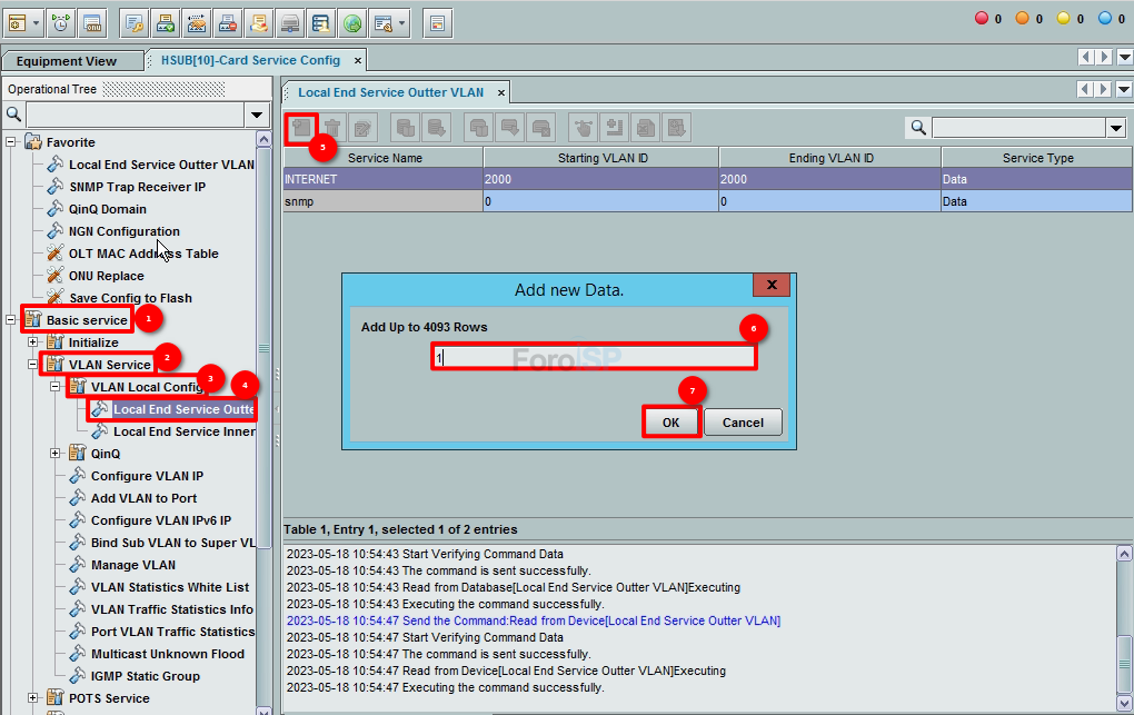 Basic Service | VLAN Service | VLAN Local Config | Local End Service Outter VLAN