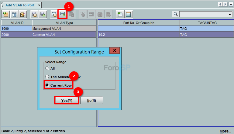 Una vez agregada la VLAN, ahora le daremos tag al puerto 2, seleccionamos la ventana VLANID - VLAN Type y la agregamos como en el ejemplo y de igual forma en la ventana de Port No. Or Group No - TAG/UNTAG haciendole tag al puerto 2. Para eso coloquese en: