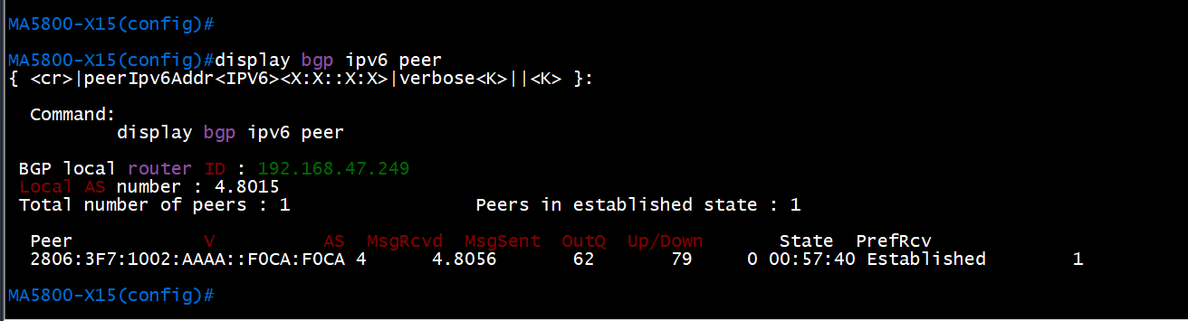 peer 2806:3F7:1002:AAAA::F0CA:F0CA enable