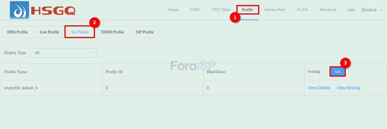 - Profile ID: Debido a que la OLT ya tiene registrado uno por default, usaremos el número 1