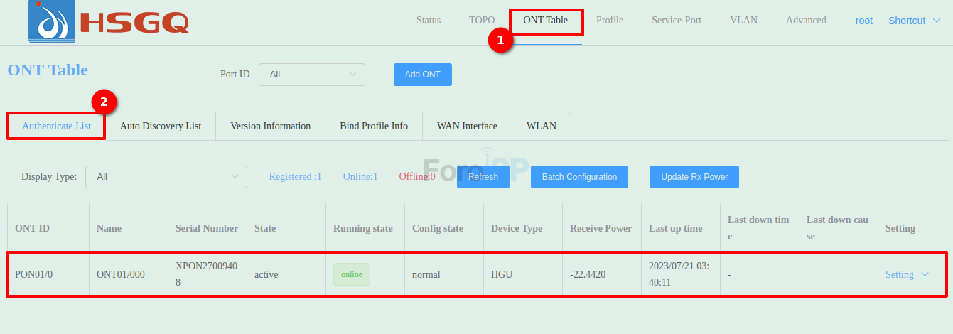 ONT Table | Authenticate List