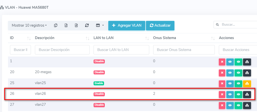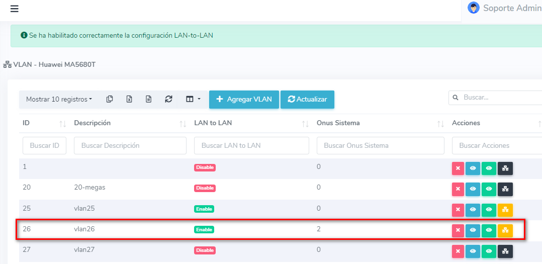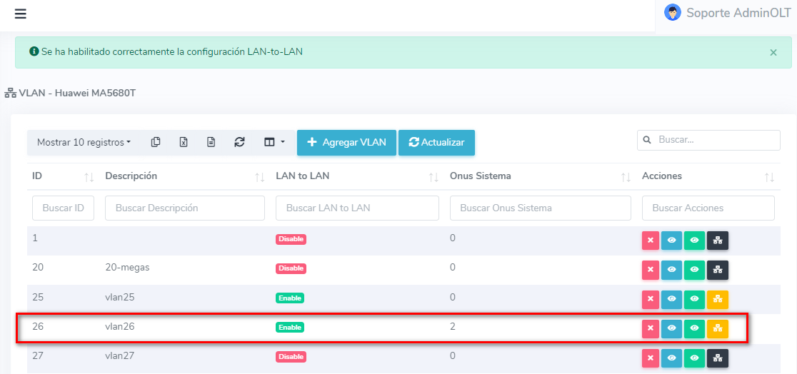 Una de estas plataformas es AdminOLT, cuya función puede ejecutarse desde el apartado de VLAN, más información pueden consultar este apartado.