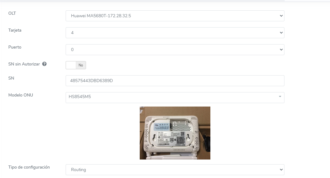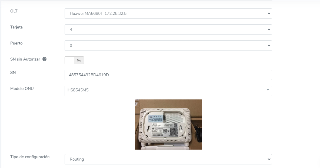 ont add 0 0 sn-auth 485754433B2F7F9D omci ont-lineprofile-id 2 ont-srvprofile-id 3 desc "PRUEBA_LAN-to-LAN 1"