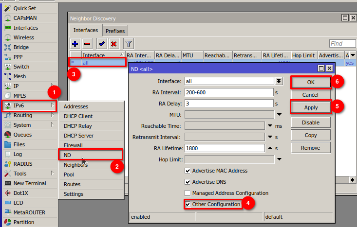 /ipv6 nd set [ find default=yes ] other-configuration=yes