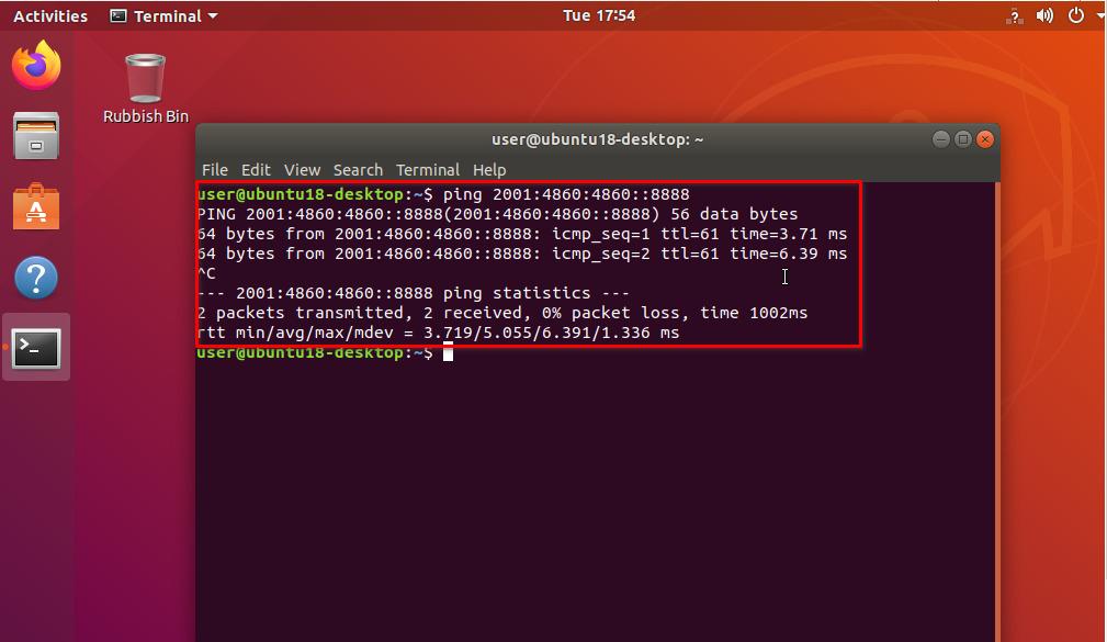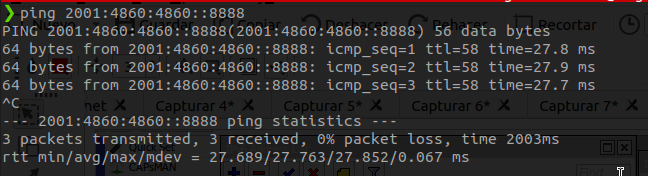 Para lograr esto podemos valernos de unos simples pings hacia google o la IPv6 mostrada en el diagrama 2001:4860:4860::8888.