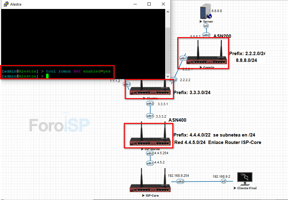 Activar RoMON a todos los router que estén en la topología