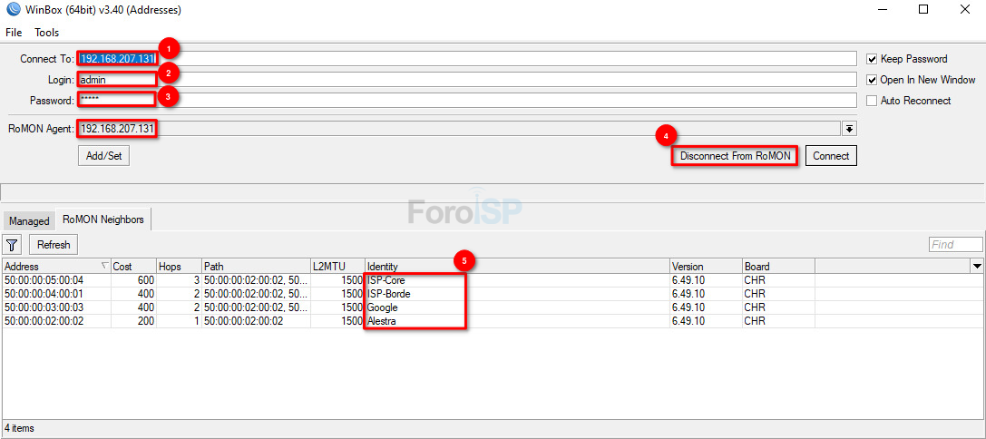 Conectar por RoMON a los demas routers.