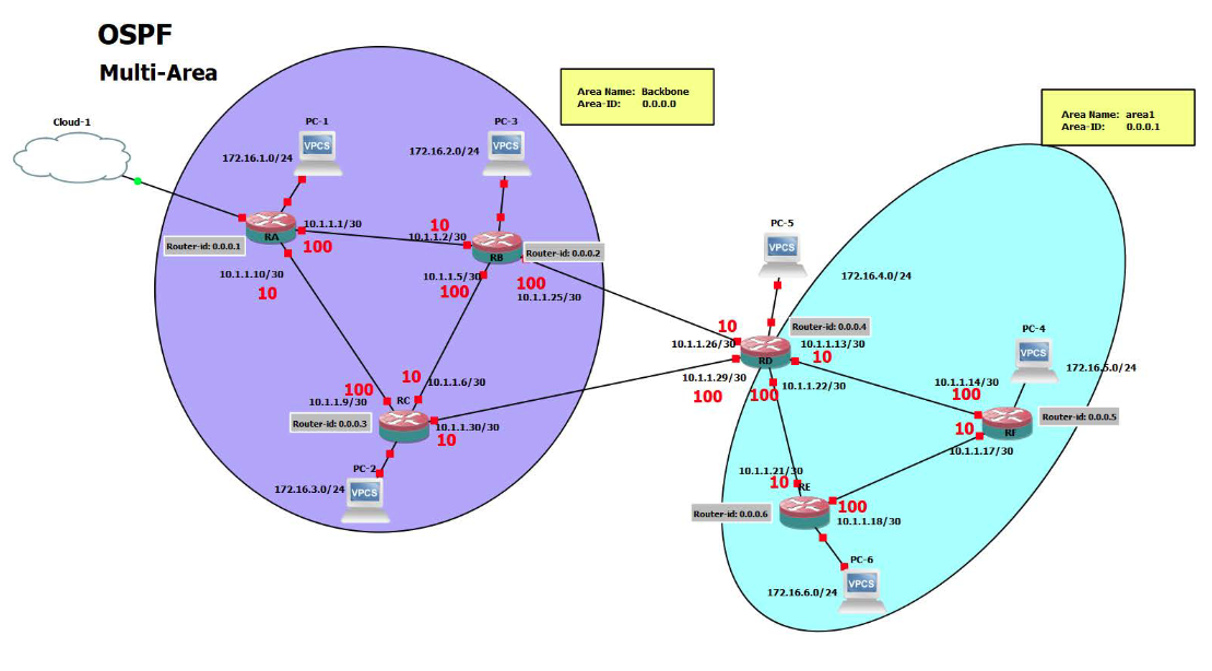 RD tiene conexión hacia el área backbone pero también tiene conexión hacia el área 1